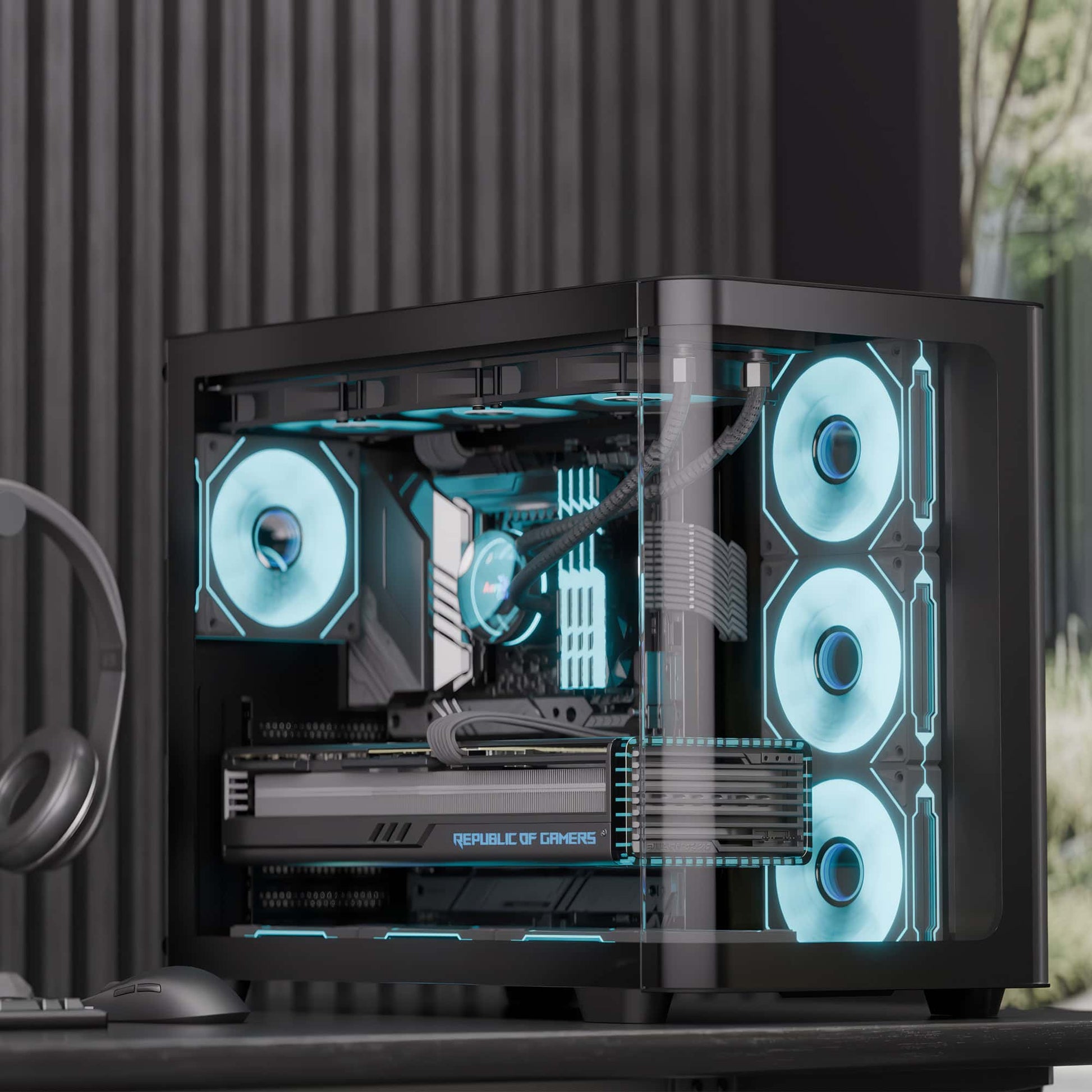 - Includes 3 pre-installed 12cm reverse-blade ARGB fans in the side panel and 1 pre-installed 12cm ARGB fan in the rear.