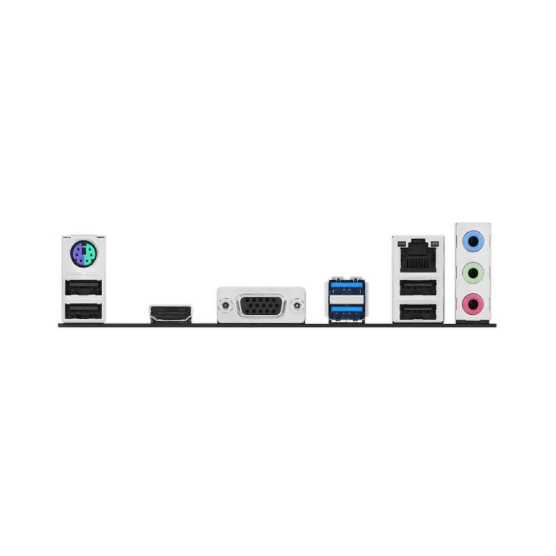 | Ports | 2 x USB 3.2 Gen 1 (5G) ports (2 x Type-A) 4 x USB 2.0 ports (4 x Type-A) 1 x VGA port 1 x HDMI™ port 1 x Realtek 1Gb Ethernet port 3 x Audio jacks 1 x PS/2 Keyboard/Mouse combo port |