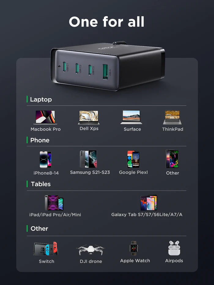 | 2 | Supports the latest PD3.1 charging protocol, enabling full-speed charging for laptops, tablets, and smartphones across multiple brands. |