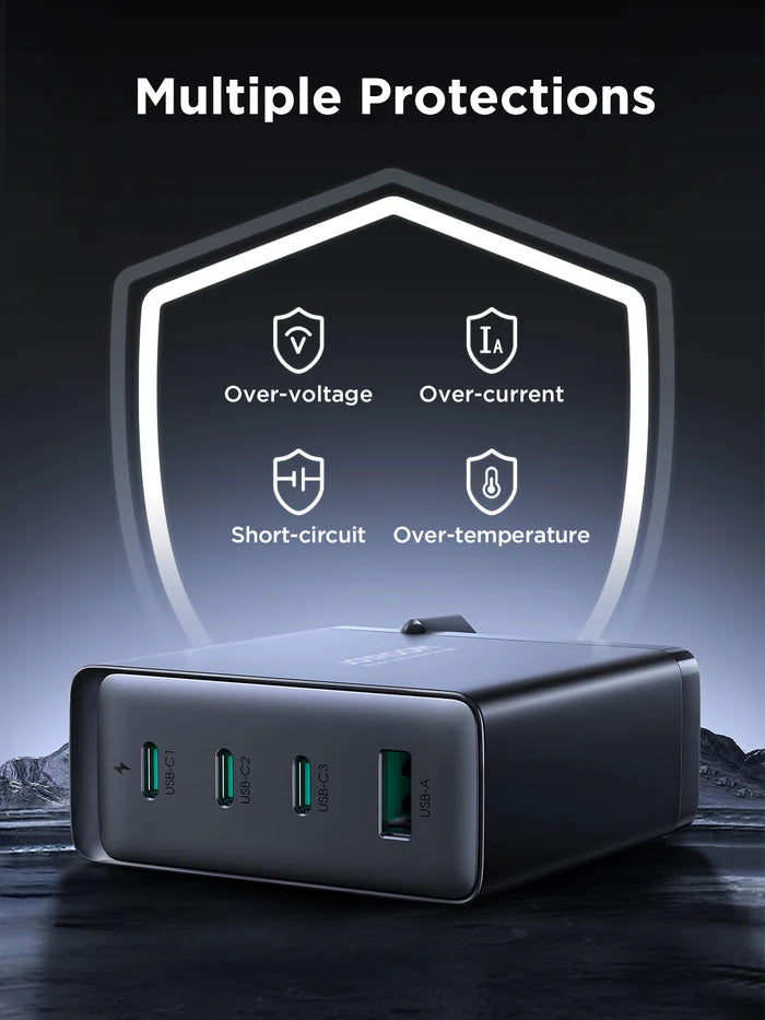 | 3 | Capable of charging four devices simultaneously — one charger for all your essentials. |