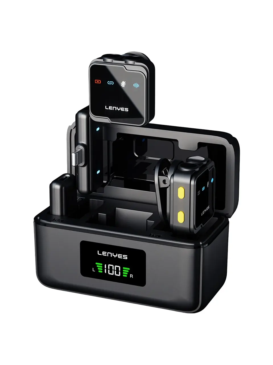 Lenyes Lm205 offers a brand new audio solution to content creators, educators and broadcasters with its dual-receiver structure supporting both Type-C and Lightning connections. Ideal for users who want to switch between Android and iOS devices, this system can be easily controlled via the charging case, while its high-sensitivity microphones provide clear and powerful audio performance in any environment.Say Goodbye to Noise, Hello to Clarity!