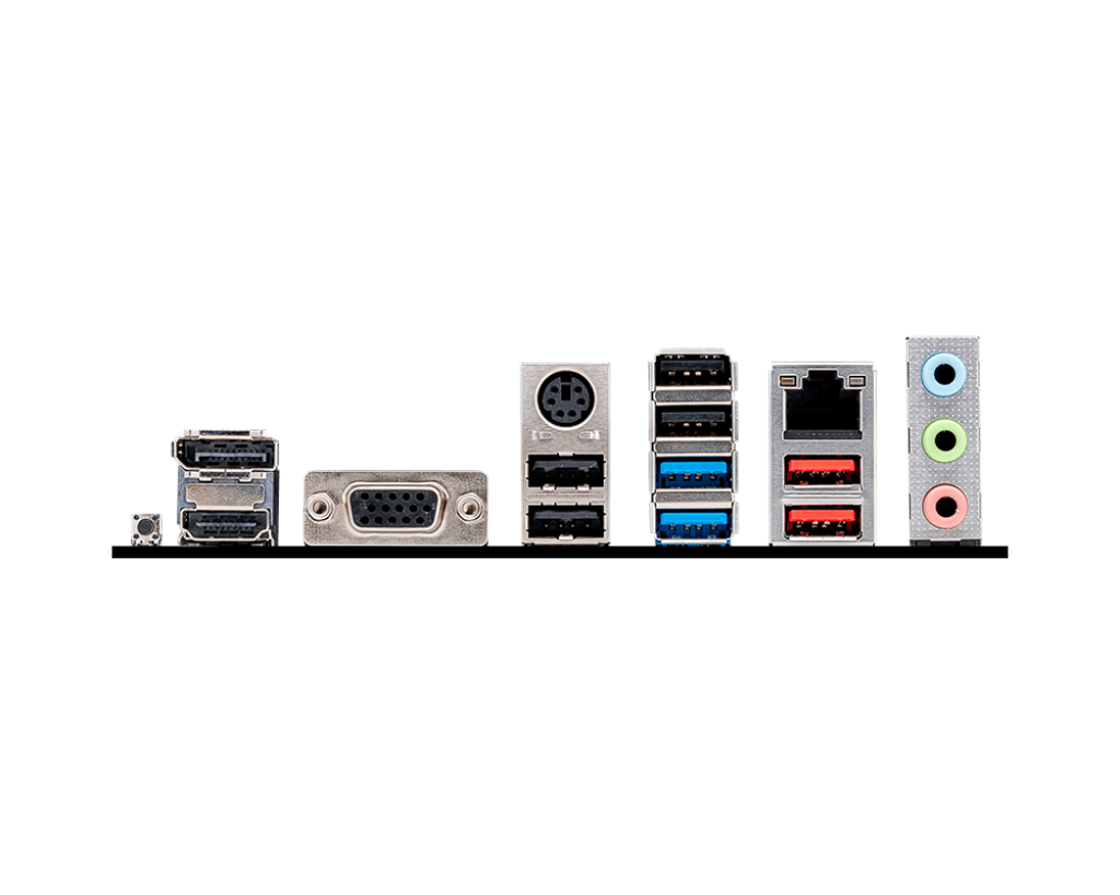 | Ports | DisplayPortVGAKeyboard / MouseUSB 2.02.5G LANAudio connectorsFlash BIOS ButtonHDMI™USB 2.0USB 3.2 Gen 1 5Gbps (Type-A)USB 3.2 Gen 2 10Gbps (Type-A) |