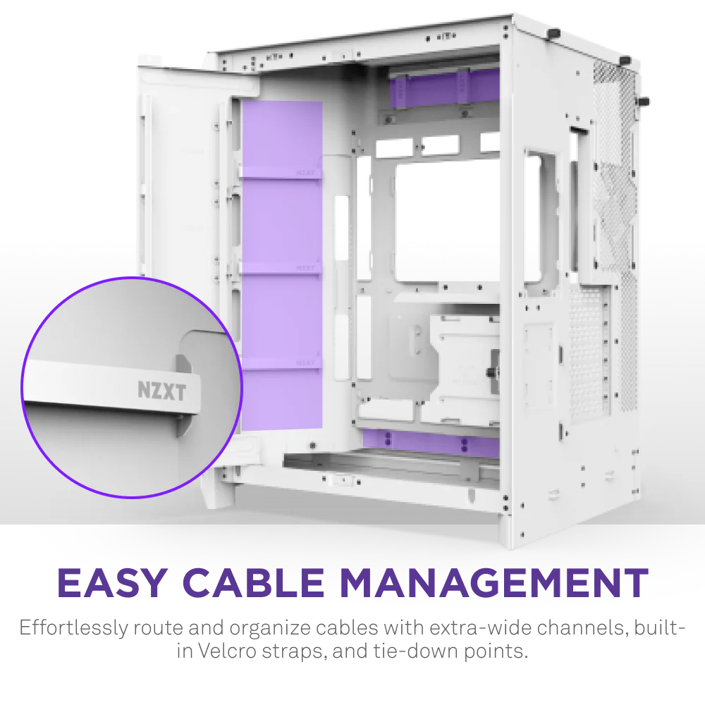 NZXT H9 Flow RGB+ (2025) Panoramic Perforated Dual-Chamber Mid-Tower Tempered Glass New Design Gaming Case w/ 2X F420 RGB Core Single-Frame Fans + 1XF120 RGB Core & Back-Connect Ready - White