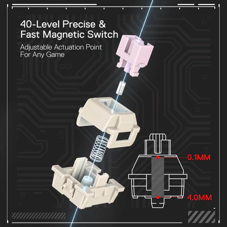 | Technology | Rapid Trigger Tech — Adjustable actuation point (0.1mm–4.0mm) with 40-layer precision for dynamic activation/deactivation control. |